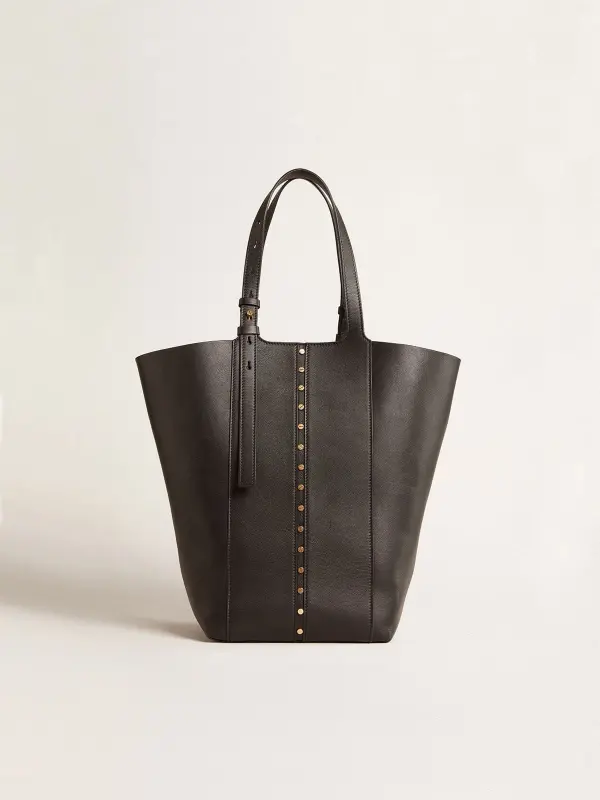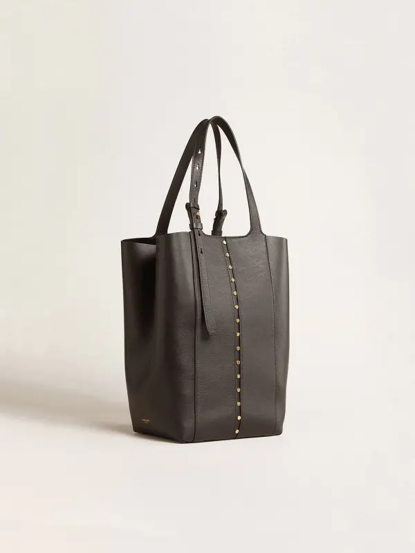 Tailored to meet the demands of metropolitan life, the 24/7 bag pays homage to the rhythm of the city. It offers two bags in one, allowing you to seamlessly move through your busiest days and nights. This classic version of the North South model in black leather features adjustable double handles and side fastenings, allowing you to change the width of the bag. The gold-tone studs that highlight the Bag’s elegance add the finishing touch.