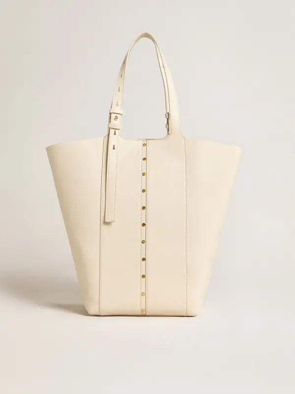 Tailored to meet the demands of metropolitan life, the 24/7 bag pays homage to the rhythm of the city. It offers two bags in one, allowing you to seamlessly move through your busiest days and nights. This classic version of the North South model in cappuccino-coloured leather features adjustable double handles and side fastenings, allowing you to change the width of the bag.The gold-tone studs that highlight the Bag’s elegance add the finishing touch.