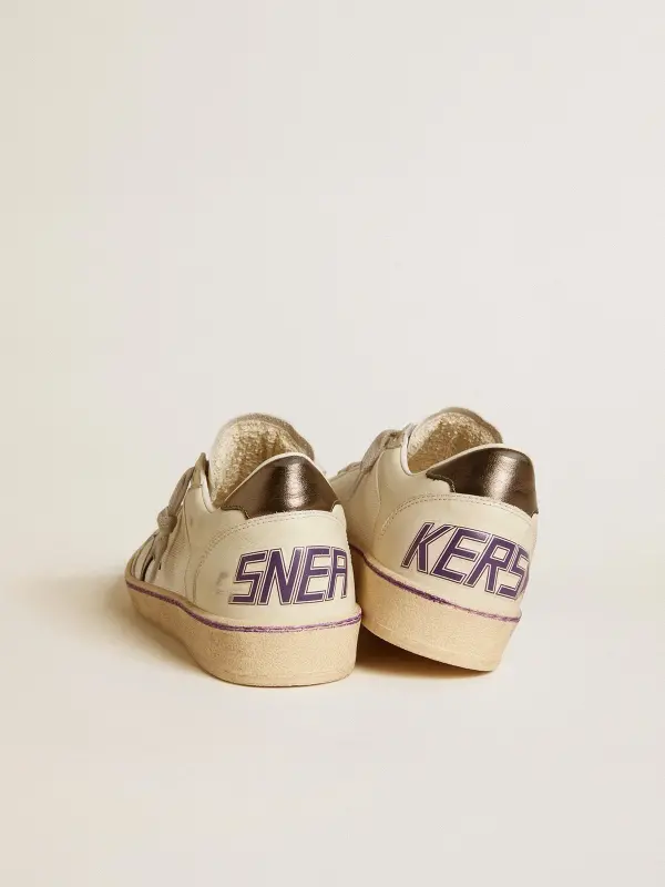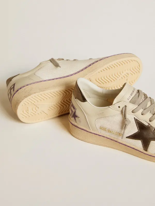 Dreaming of the Eighties. Our Ball Star sneakers have an American college vibe caught between a hoop shot and a skateboard ride. This model with a white mesh and leather upper features an anthracite metallic leather star and heel tab. The lilac stripe on the foxing and ice-gray laces add the finishing touch: beautiful things that never go out of fashion.