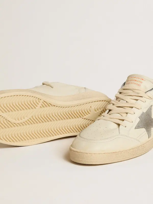 Dreaming of the Eighties. Our Ball Star sneakers have an American college vibe caught between a hoop shot and a skateboard ride. This model with an off-white nappa leather upper features a gray suede star and heel tab. And the off-white laces add the finishing touch: beautiful things that never go out of fashion.