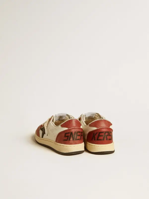 Dreaming of the Eighties. Our Ball Star sneakers have an American college vibe caught between a hoop shot and a skateboard ride. With a white nappa leather upper, the Junior version of this model features a black leather star and red leather inserts, such as the toe and heel tab. The cream laces add the finishing touch: beautiful things that never go out of fashion.