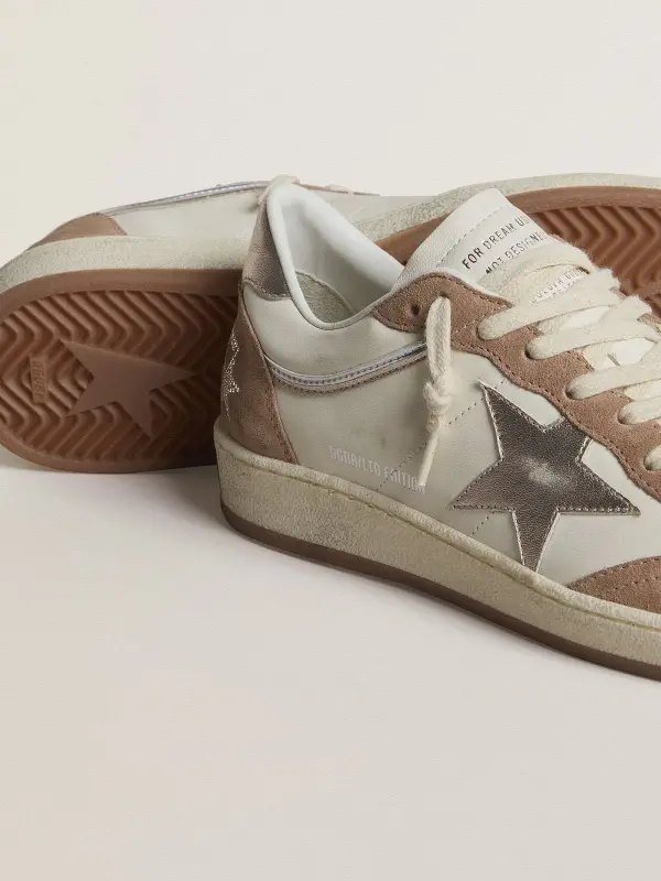 Ball Star LTD in white nappa leather and old rose suede with metallic silver leather star and heel tab