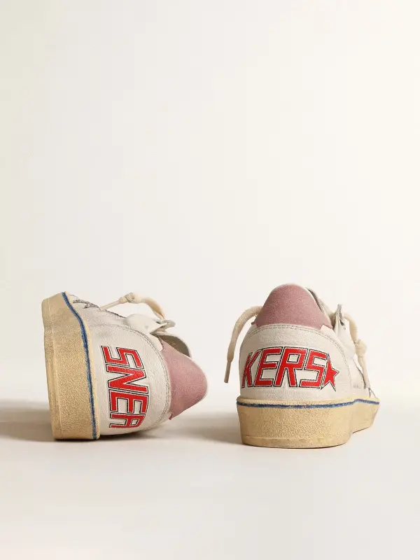 Dreaming of the Eighties. Our Ball Star sneakers have an American college vibe caught between a hoop shot and a skateboard ride. This model with a white nappa leather upper features a silver glitter star and a pink suede heel tab. The ice-gray suede toe, blue stripe on the foxing and cream-colored laces add the finishing touch: beautiful things that never go out of fashion.