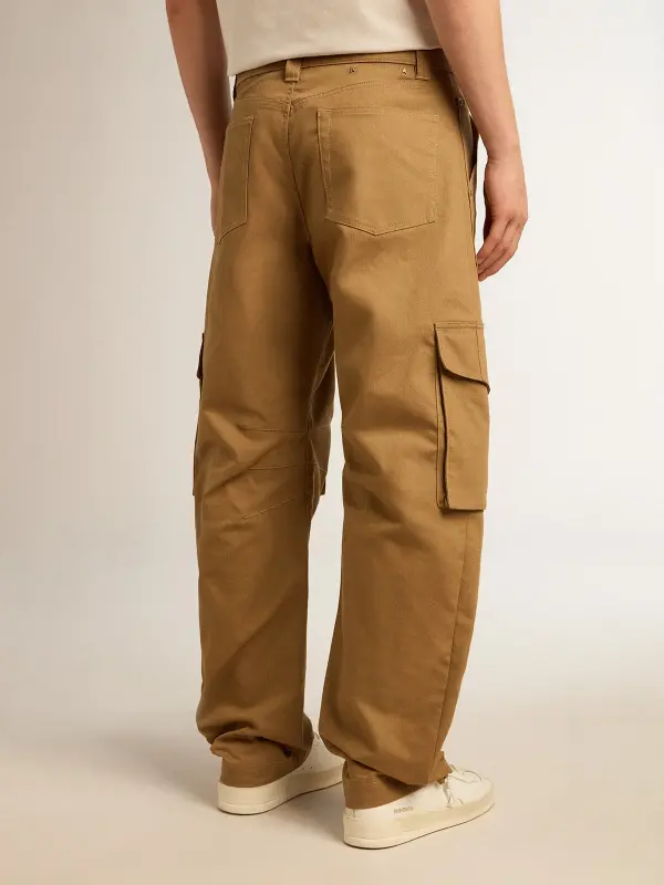 A unique, timeless collection that encapsulates the Golden Goose DNA, designed to remain with you every day, through thick and thin, come rain or shine. These beige khaki cargo pants feature a wide leg, six front pockets and two back pockets.