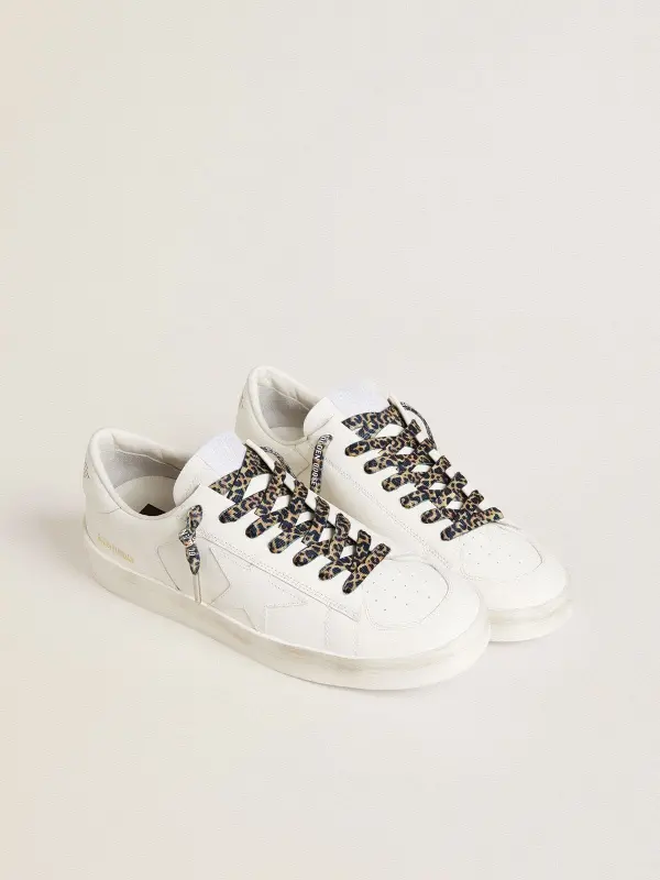Home / Shop / Accessories / Beige leopard-print laces with contrasting white logo