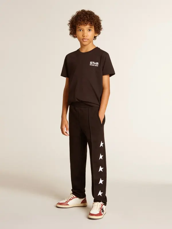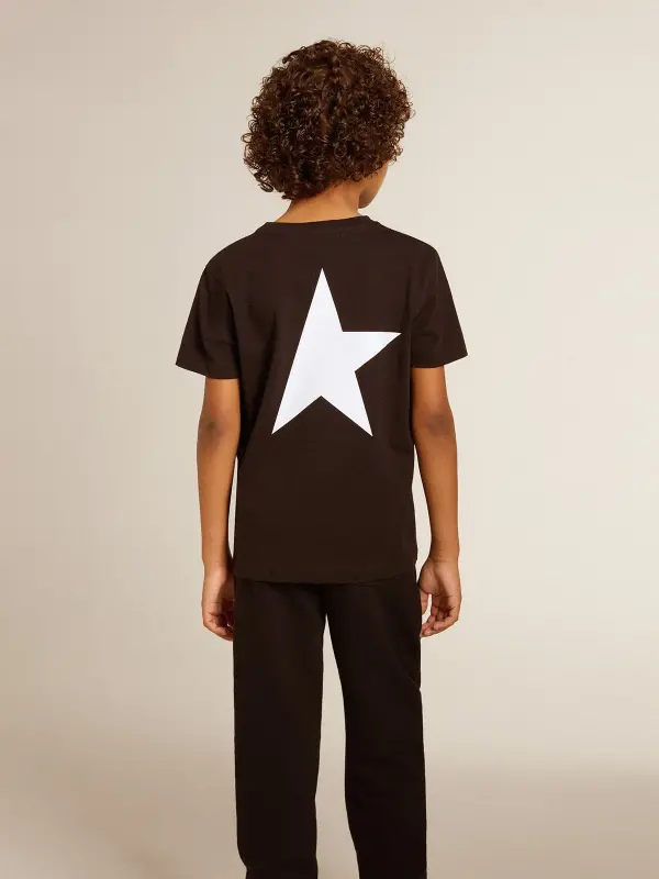 Home / Shop / Boys / Black T-shirt with contrasting white logo on the front and maxi star on the back