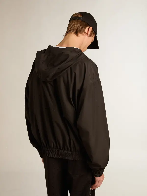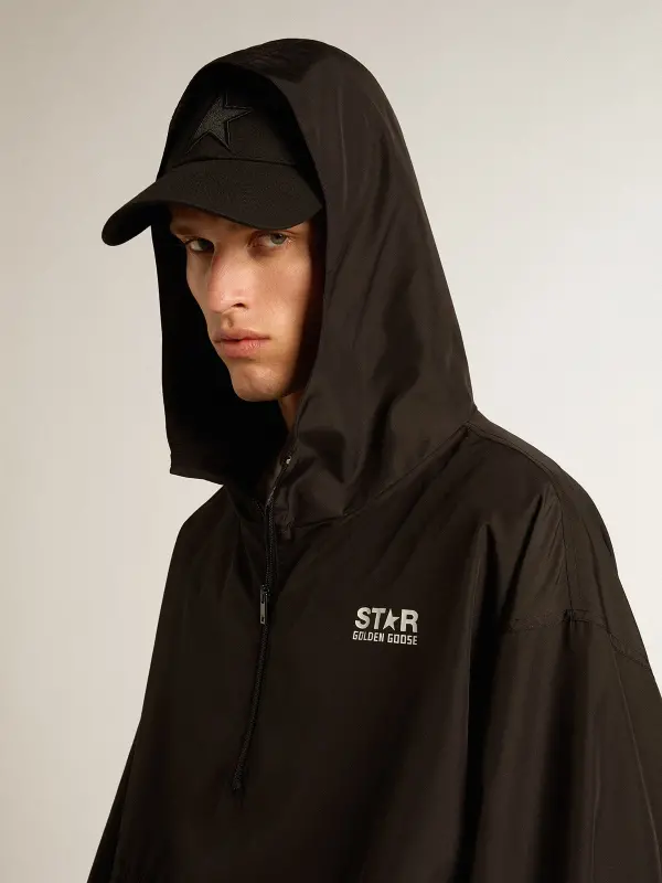 A collection with a casual soul but a versatile attitude: inspired by the Seventies, it has a timeless vintage appeal, suited to any occasion or look. This relaxed-fit windbreaker in black technical material features a half-zip fastening and a small zipped central pocket. The white logo printed on the front adds the finishing touch.