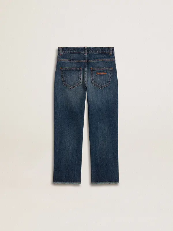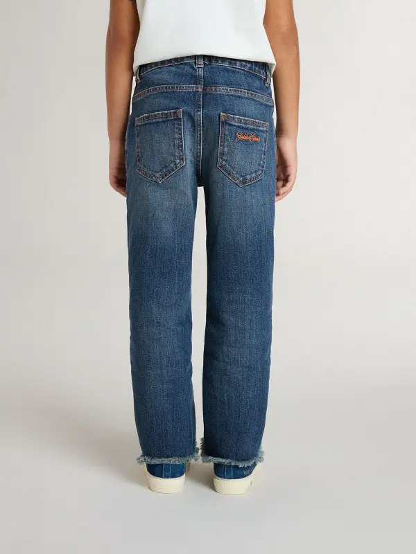 A collection with a casual soul but a versatile attitude: inspired by the Seventies, it has a timeless vintage appeal, suited to any occasion or look. These medium-wash denim jeans feature a regular fit and medium wash, logo embroidery on the back pocket and raw-cut hems. The five pockets add the finishing touch.