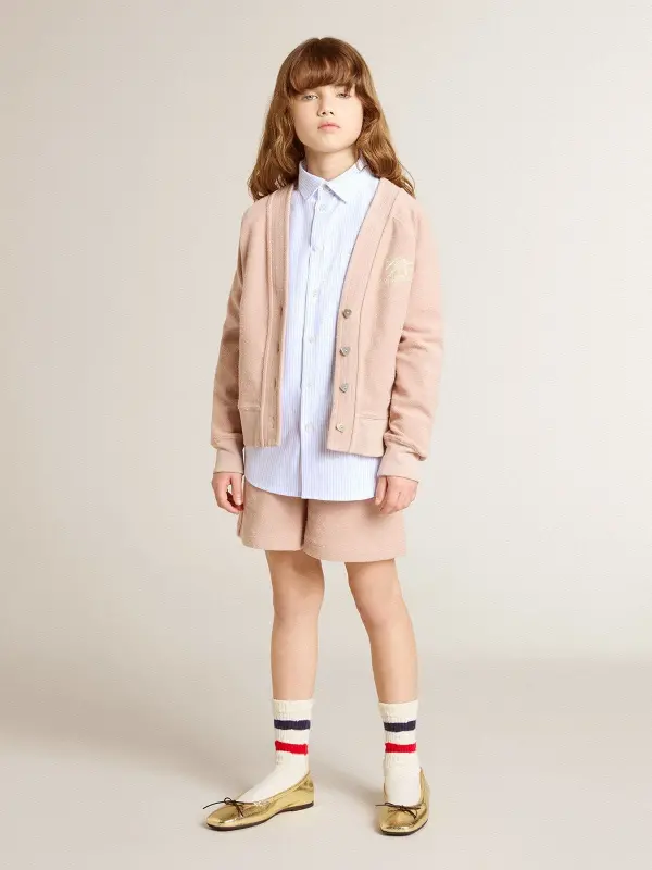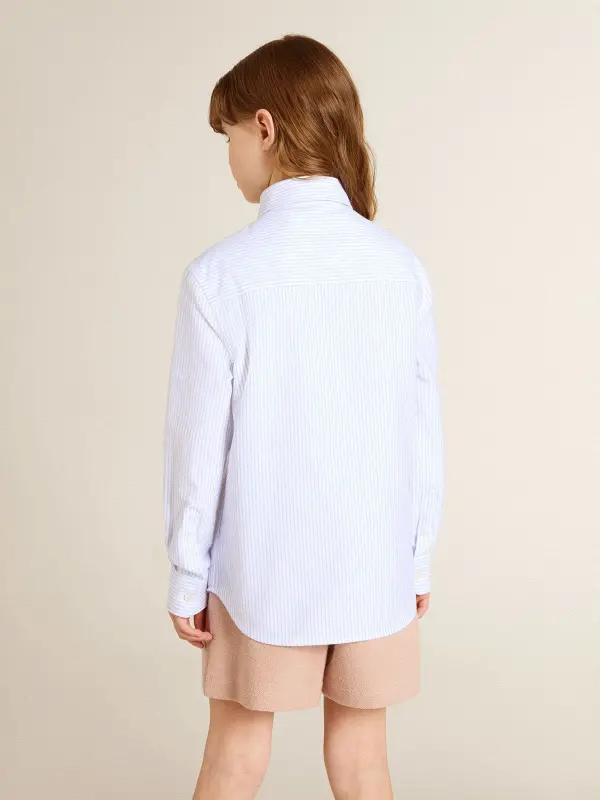 Made of light blue and white striped cotton, this boys' shirt features a classic design with a pointed collar and buttoned cuffs. The white Golden Goose embroidery on the chest pocket completes the look.