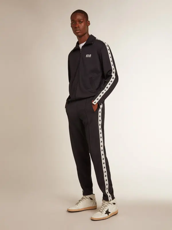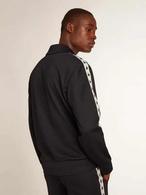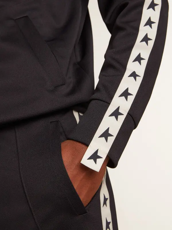 A collection with a casual soul but a versatile attitude: inspired by the Seventies, it has a timeless vintage appeal, suited to any occasion or look. This zipped, regular-fit sweatshirt in dark blue technical jersey features a white grosgrain strip on the sleeves with blue stars. The contrasting logo on the front adds the finishing touch.