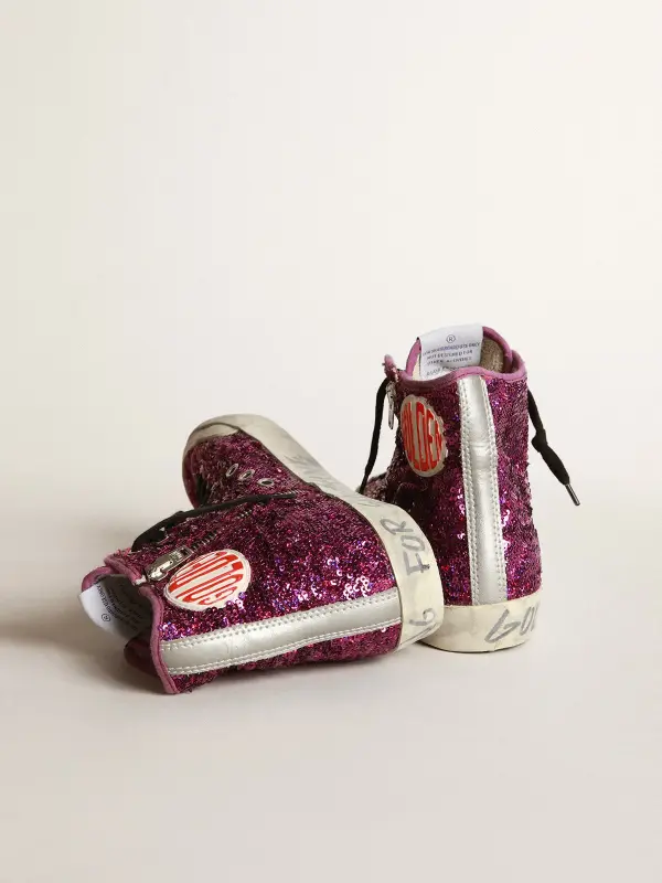 Francy sneakers with sequins and handwritten lettering on the outsole