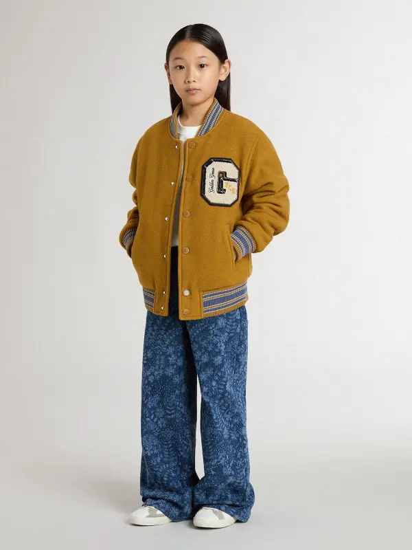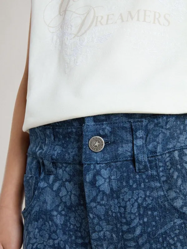 Girl’s medium wash wide jeans with print