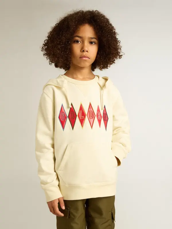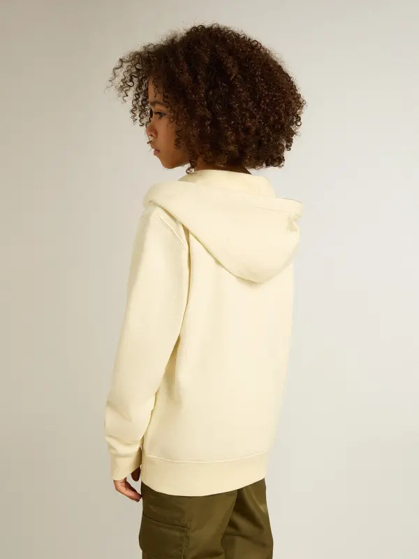 Hooded sweatshirt in worn white with Golden embroidery on the front