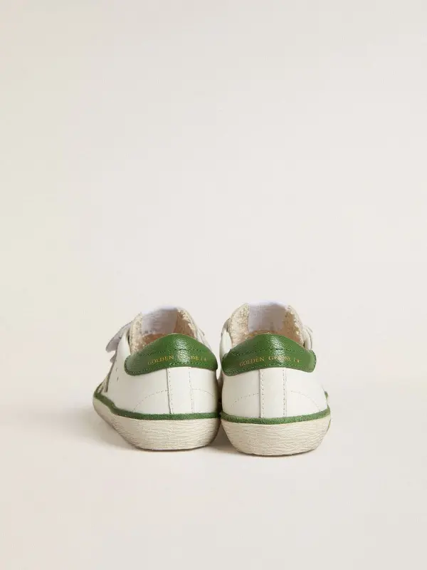 Junior Old School in white leather with green nappa heel tab and green insert