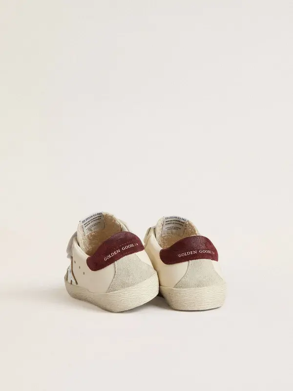 Our Old School sneakers feature two Velcro straps on the front with contrasting logo. With a white leather upper, the Junior version of this model features a silver metallic leather star, a purple suede heel tab and ice-gray suede inserts. The smiley detail and contrasting lettering on the foxing add the finishing touch.