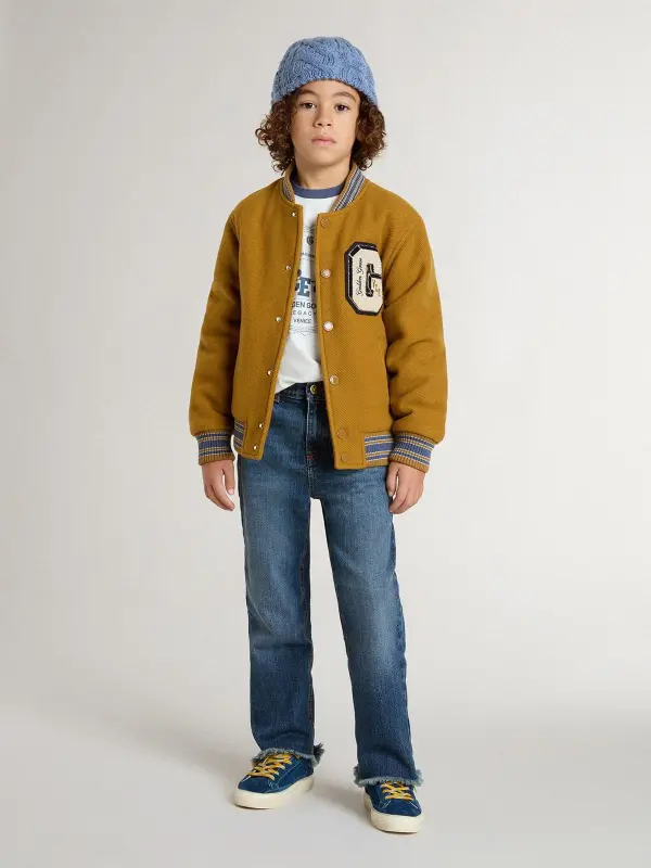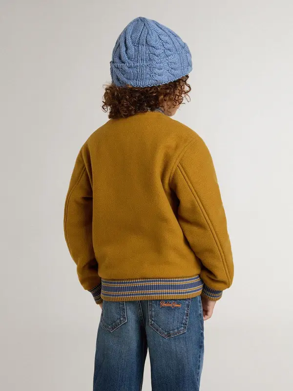 Kid’s wool bomber jacket in ochre yellow with patch