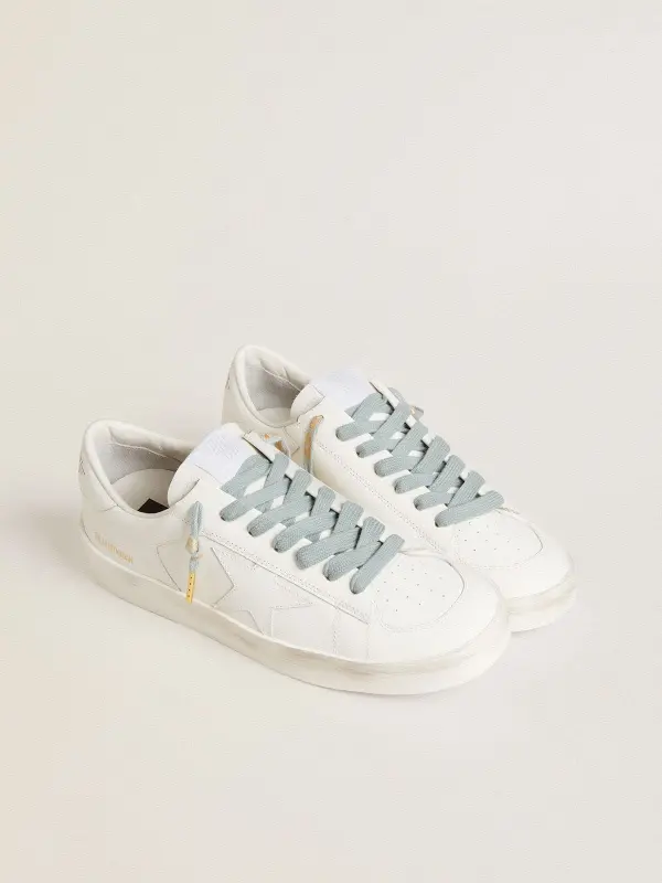 Light-blue cotton laces with contrasting gold-colored logo