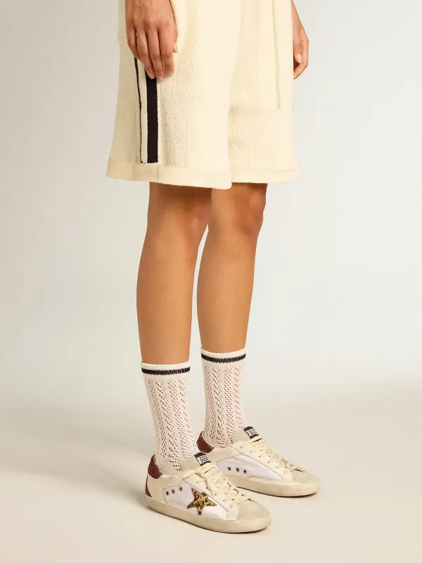 Long ribbed socks in vintage white with black stripe