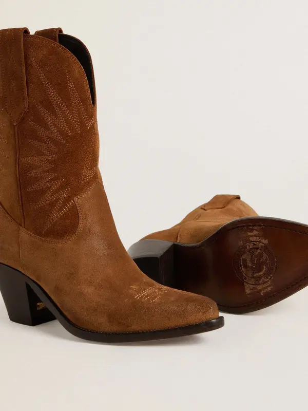 Low Wish Star boots in cognac suede with tone-on-tone embroidered star