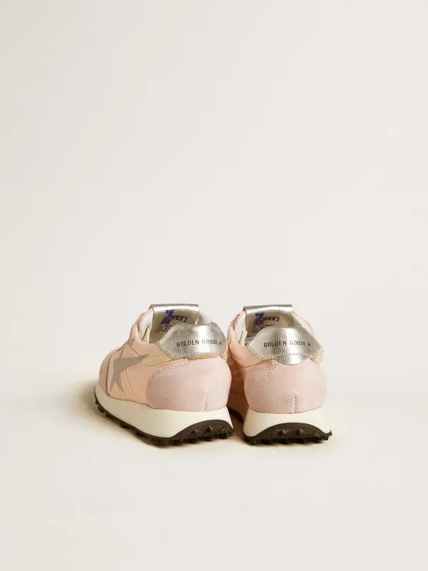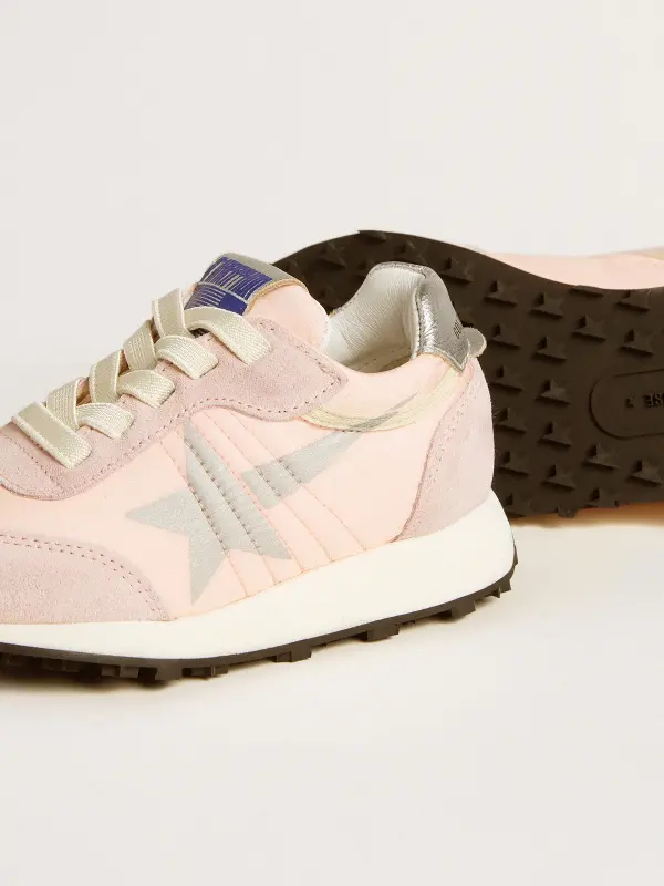 Track and field-inspired, with a Seventies flair. Day after day, our new Marathon sneakers are designed to keep you running after your dreams, paying homage to the marathon that is life. In pink nylon accentuated with pink suede inserts, the Junior version of this model features a silver printed star and metallic silver leather heel tab. The look is completed by white laces and a starred outsole that make a truly unique impression.