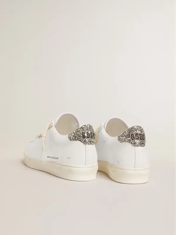 Matchstar in white leather with silver glitter heel tab