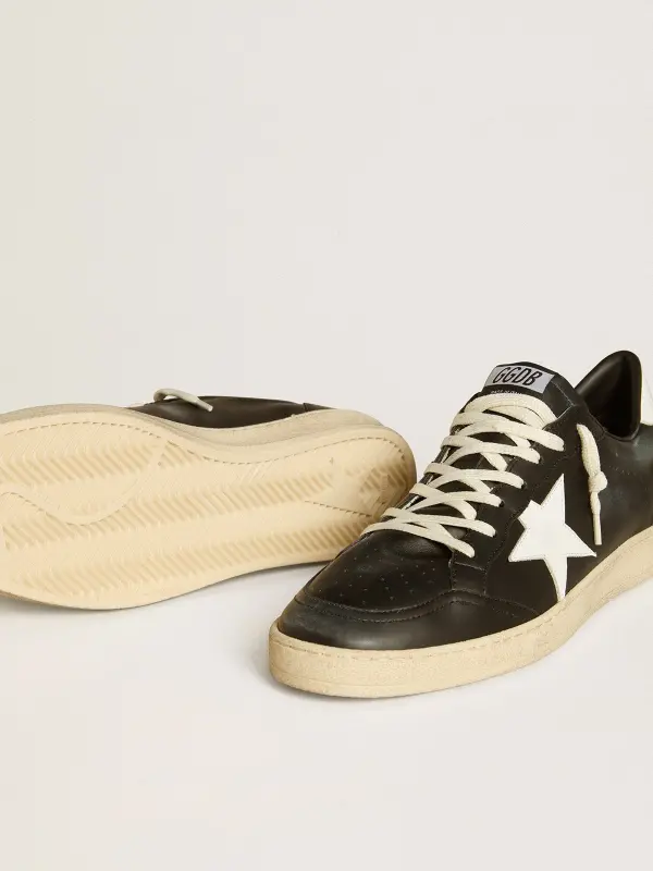 Dreaming of the Eighties. Our Ball Star sneakers have an American college vibe caught between a hoop shot and a skateboard ride. This model with a black nappa leather upper features a white leather star and heel tab. And the white laces add the finishing touch: beautiful things that never go out of fashion.