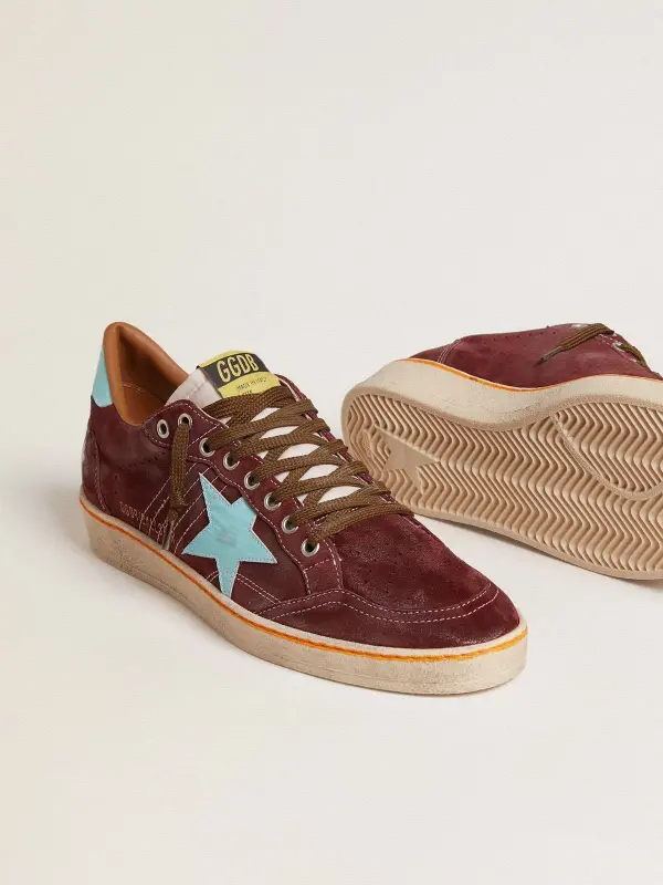 Men’s Ball Star in dark red suede with light blue star and heel tab