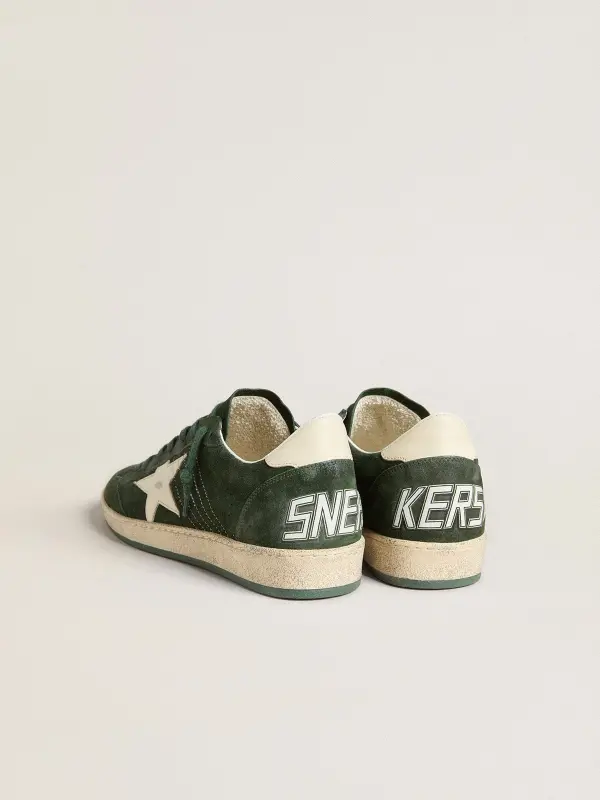 Dreaming of the Eighties. Our Ball Star sneakers have an American college vibe caught between a hoop shot and a skateboard ride. This men's version with a green suede upper features a white leather star and heel tab. And the green laces add the finishing touch: beautiful things that never go out of fashion.