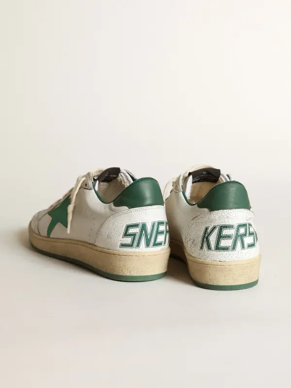 Men’s Ball Star in white nappa leather with green leather star and heel tab