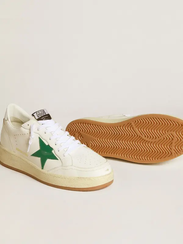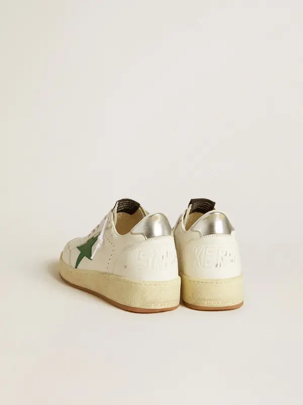 Dreaming of the Eighties. Our Ball Star 2 sneakers have an American college vibe caught between a hoop shot and a skateboard ride. This model with a white leather upper features a green leather star and a silver metallic leather heel tab. And the white laces add the finishing touch: beautiful things that never go out of fashion.