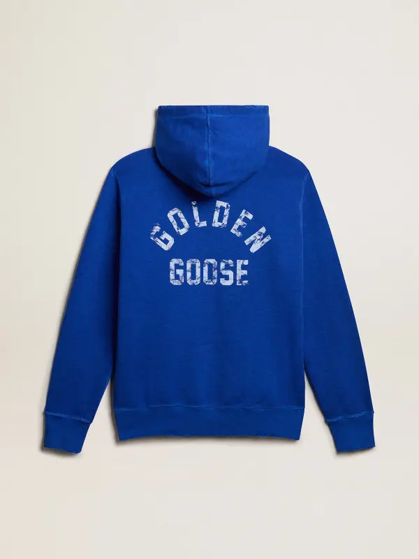 From Venice, our home, to Paris, our dream. This Journey Collection captures the essence and beauty of everyday moments in the City of Lights, immersed in a mesmerizing atmosphere where intimacy, authenticity and curiosity are the pulsating soul of it. This regular-fit, blue-colored pure cotton hoodie features a zip fastening that divides the central pocket in two. The white lettering printed on the back adds the finishing touch.