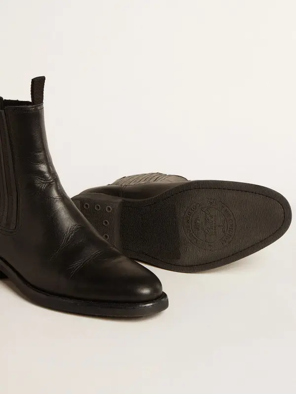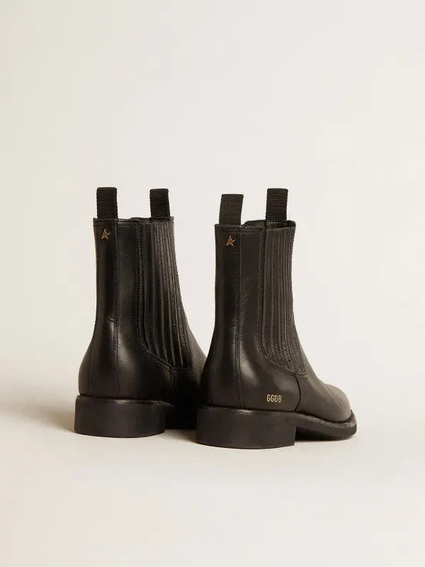 A timeless silhouette: the Chelsea boot, featuring clean simple lines, is the perfect blend of style and comfort. This men’s model features a black leather upper and gold-colored GGDB lettering on the side. The black stretch insert on the side and the galvanic antique gold star on the heel tab complete the look.