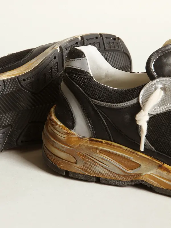 A soul with a wealth of stories to tell: our Dad-Star sneakers have timeless style, created to be passed down through the generations. With an abundance of sophisticated details, such as the yellowed sole expressing the idea of hanging your shoes in the sunlight, this men's version features a black mesh and nappa leather upper accentuated with an ice-gray suede star and a black nappa leather heel tab with reflective fabric inserts. The silver eyelets and cream-colored laces add the finishing touch.