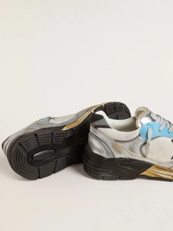 A soul with a wealth of stories to tell: our Dad-Star sneakers have timeless style, created to be passed down through the generations. This version features a white mesh and silver foiled leather upper accentuated by a black leather star and black suede heel tab. The light blue eyelets, two-tone sole and ice-gray laces add the finishing touch.