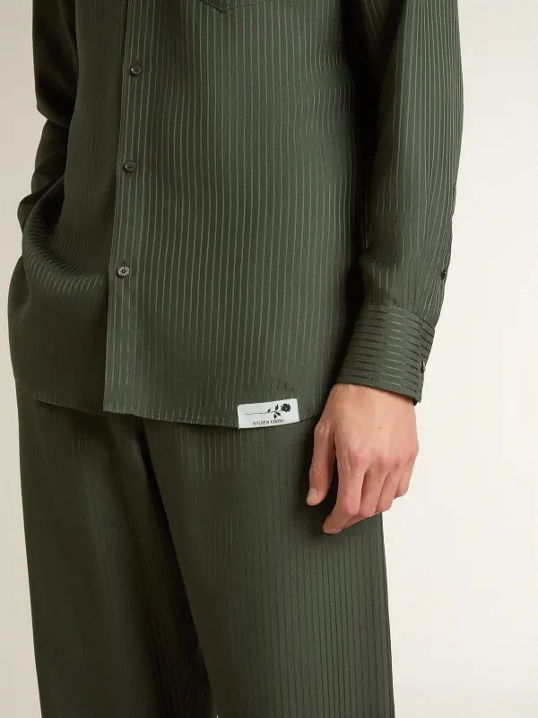 Men’s dark green shirt with vertical stripes