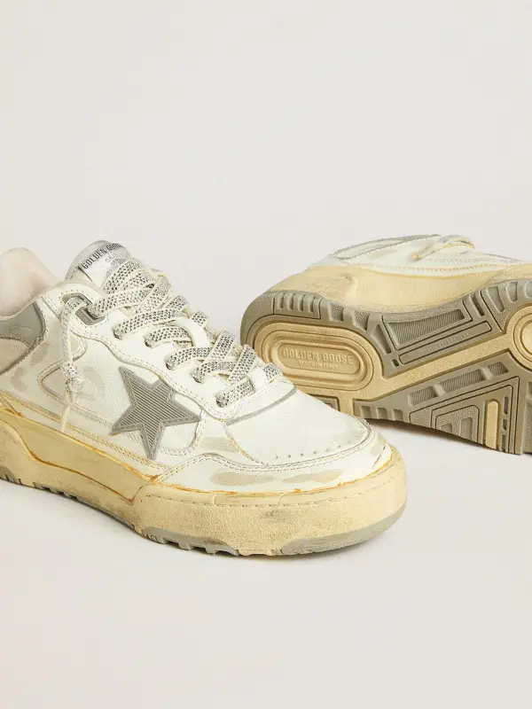 Men’s Forty2 in white leather with laces with Swarovski crystals and gray TPU star