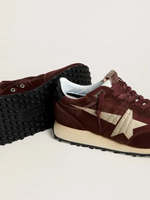 Men’s Marathon with burgundy satin upper and platinum leather star