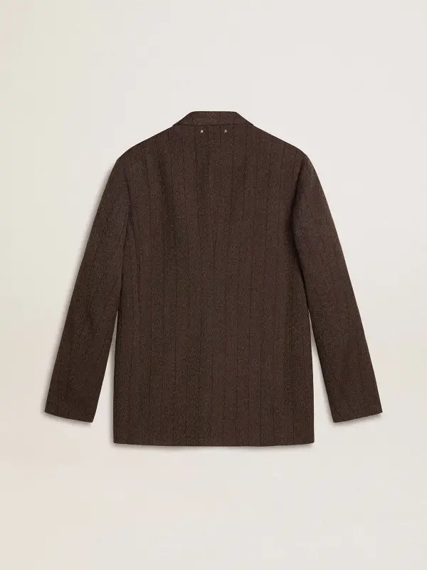 Men’s single-breasted blazer in dark brown wool with thin stripe pattern
