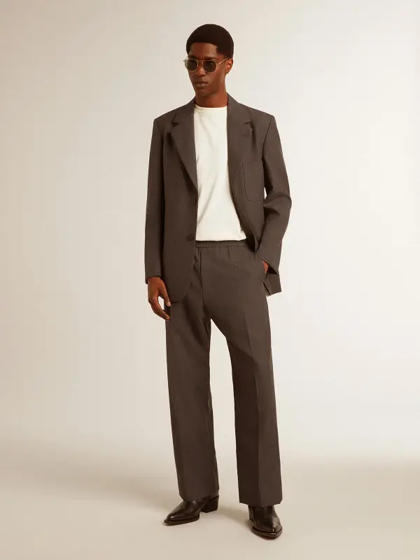 A love story to our home, Marghera. Where everything began. Our latest collection reflects the spirit of our birthplace, its contrasts, industrial soul, and manufacturing landscapes, weaving together inspirations from both the vibrant energy of workwear and the refined essence of traditional tailoring. This anthracite gray tailored wool jacket features a regular fit, button fastening and three front pockets.