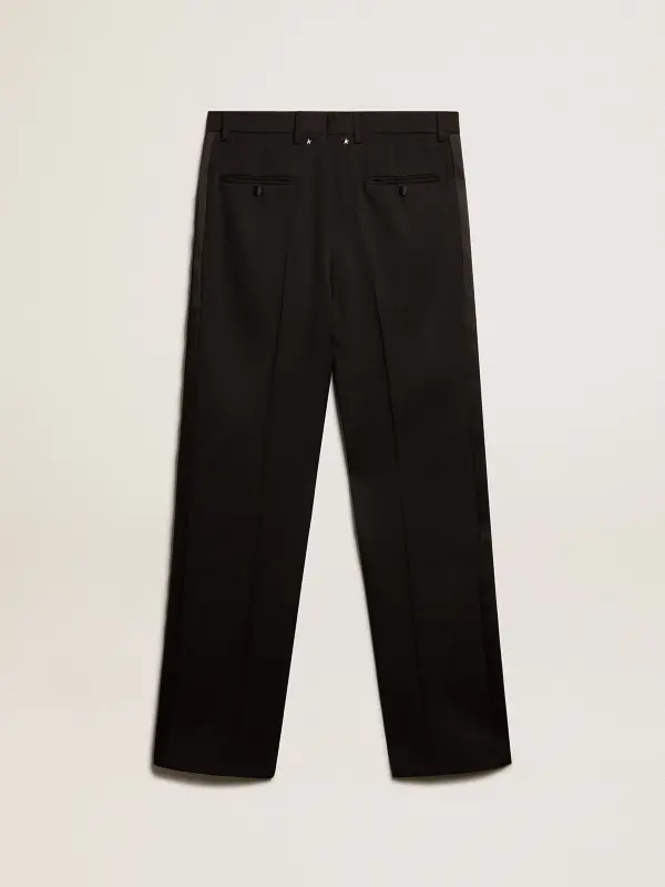 A unique, timeless collection that encapsulates the Golden Goose DNA, designed to remain with you every day, through thick and thin, come rain or shine. These tuxedo pants in black wool gabardine feature a straight leg and two front pockets.