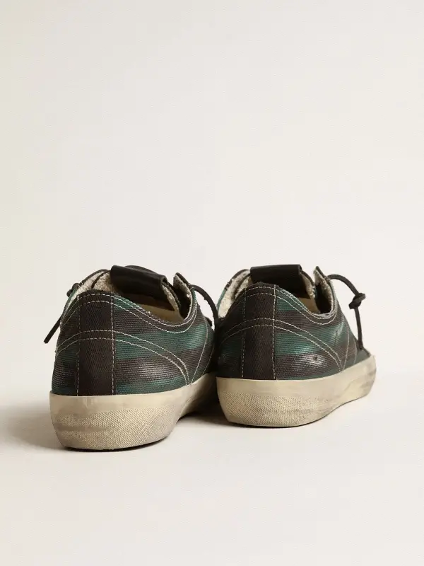 Men’s V-Star in black and green striped canvas with black leather star and toe