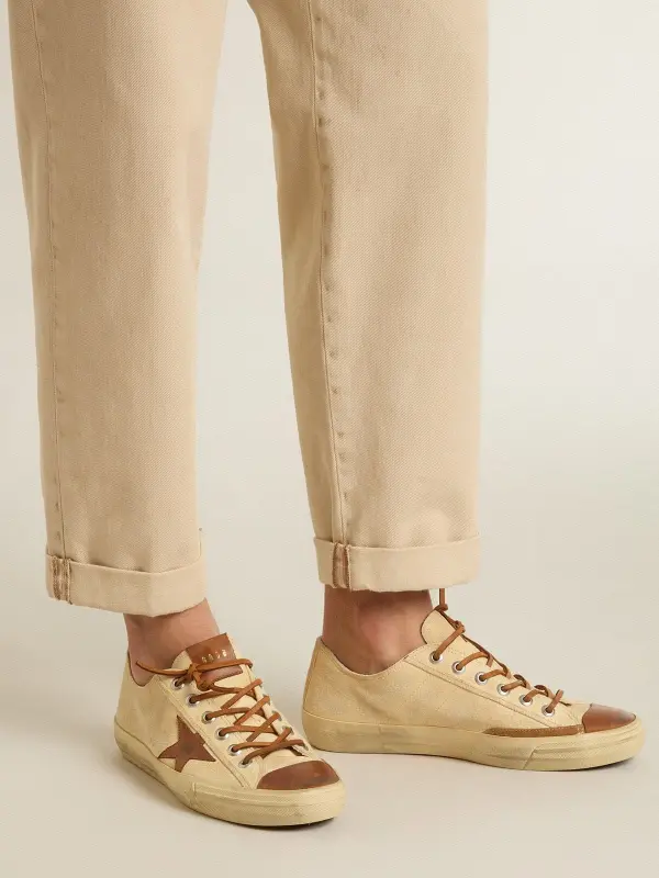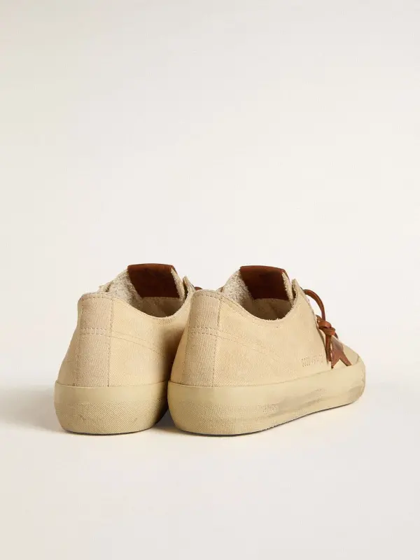 Men’s V-Star in cream canvas with tobacco leather star