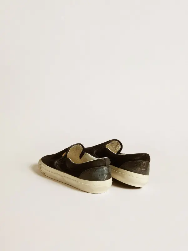 VCE speaks a simple language. Channeling the carefree image of California skate culture, the slip-on design embodies comfort, versatility and freedom of movement. This men's model with a rubber toe and black suede upper features a black leather heel tab.