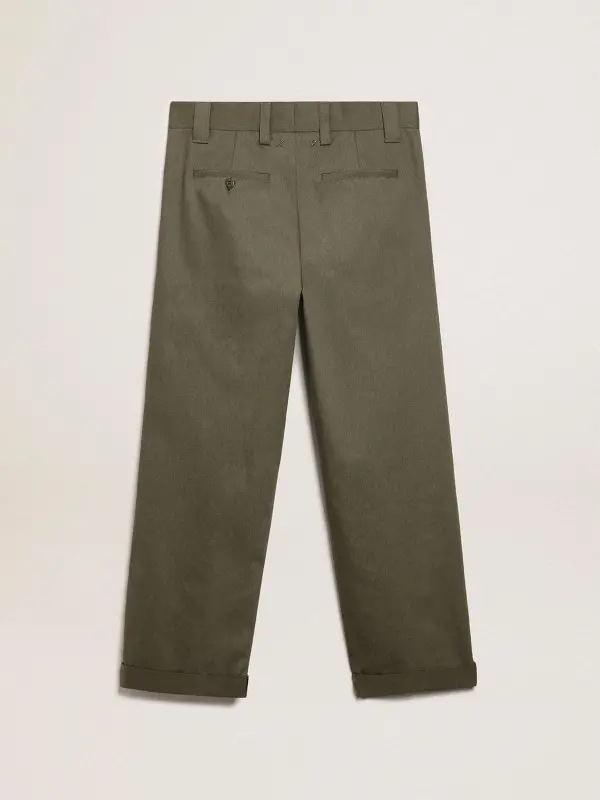 A unique, timeless collection that encapsulates the Golden Goose DNA, designed to remain with you every day, through thick and thin, come rain or shine. These military-green chinos feature a straight leg and two front pockets.