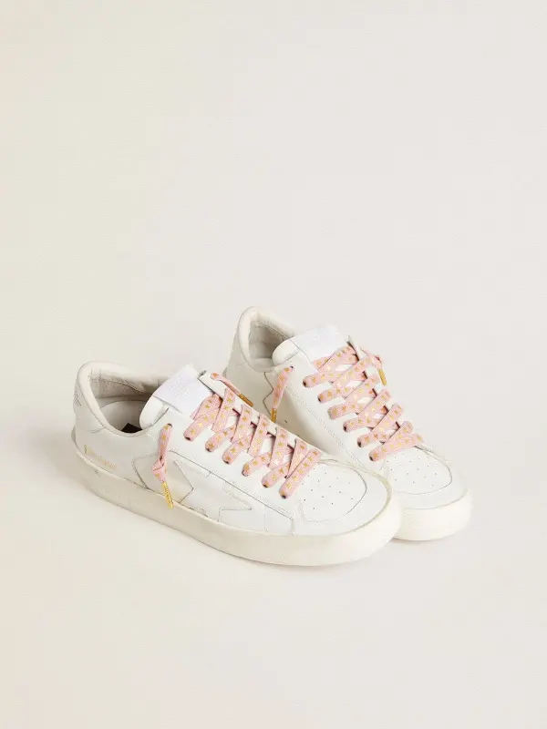 Personalize your sneakers and make them unique with the assortment of colors, finishes and exclusive details of our laces. Experiment with your pair and find alternative uses, wearing one as a bracelet or key chain. This model in pink cotton features a print with contrasting gold stars.