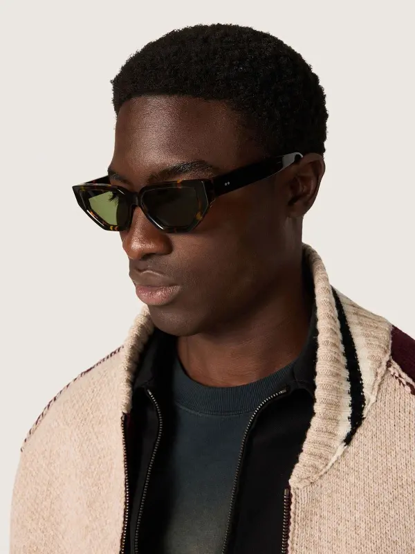 Featuring a rectangular shape, this Sunframe Jackie is distinguished by its Havana brown frame. Green lenses complete the style.