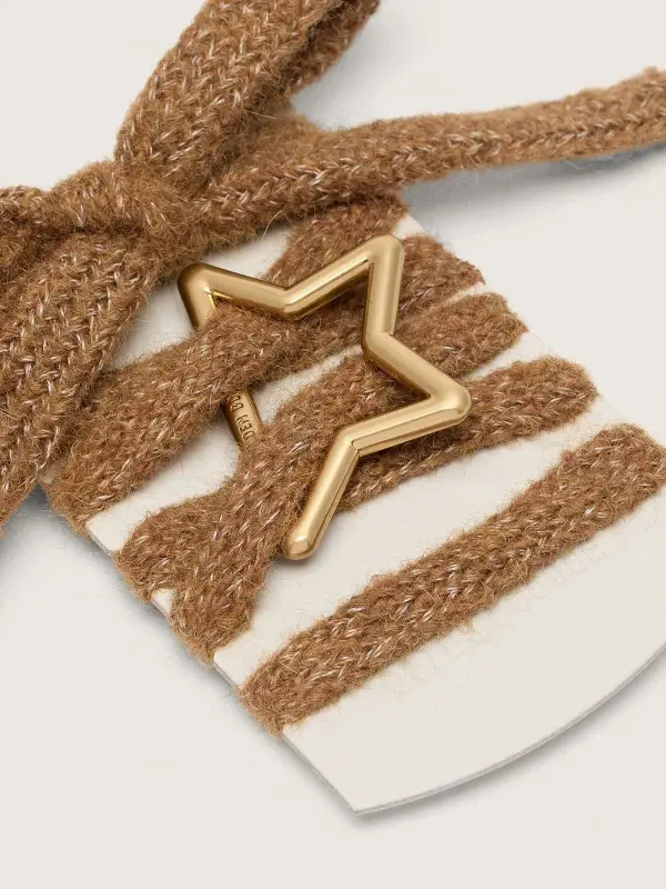 Customize your favorite sneakers with "Skins", our embellished laces, designed to express your unique style through accessories and colors that are sure to impress. This Playful model features brown-colored wool laces, embellished with a gold-colored Golden star-shaped snap hook. The ideal accessory to let your personality shine.