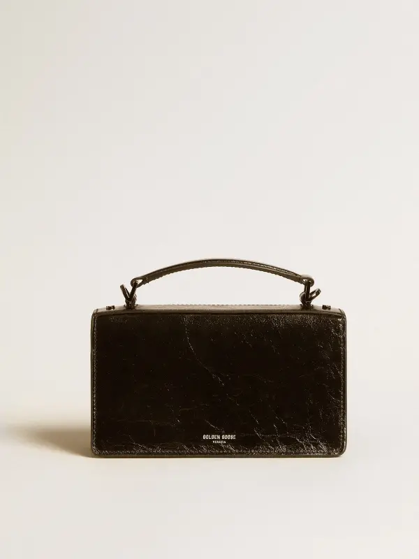 Functional yet sophisticated, our Venezia bag is a statement of Venetian elegance, inviting you to carry a piece of its soul wherever you go. In black metallic leather, the small version of this model features a black buckle closure and black metal detailing. The double inside pocket adds the finishing touch.