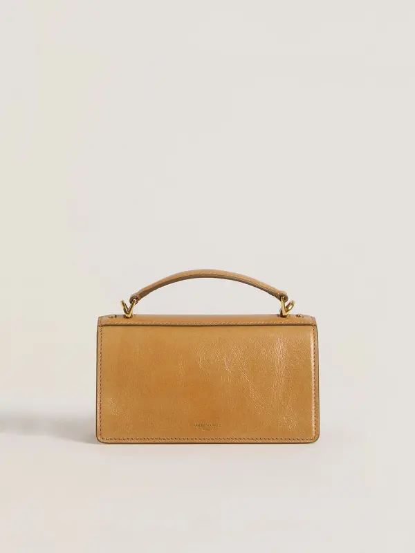 Functional yet sophisticated, our Venezia bag is a statement of Venetian elegance, inviting you to carry a piece of its soul wherever you go. In tobacco-colored leather, the small version of this model features a gold buckle fastening and gold-colored metal details. The double inside pocket adds the finishing touch.