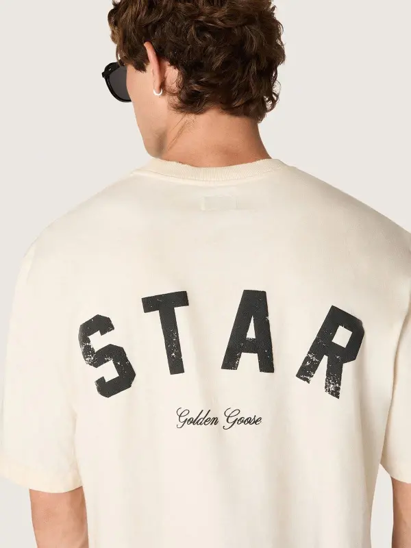 Star unisex cotton T-shirt in vintage white with black print on the back